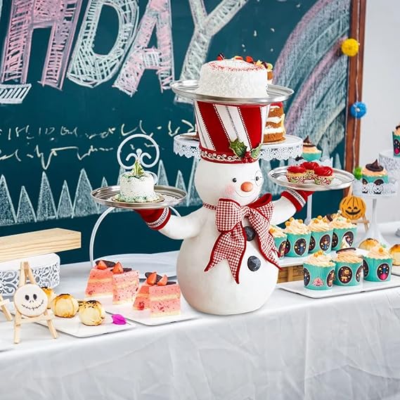Adorable snowman face smiles at your each time you look, Makes a wonderful gift this Christmas.This Snowman Treats Holder props three plates for serving up all kinds of goodies or devilishly tasty finger foods.